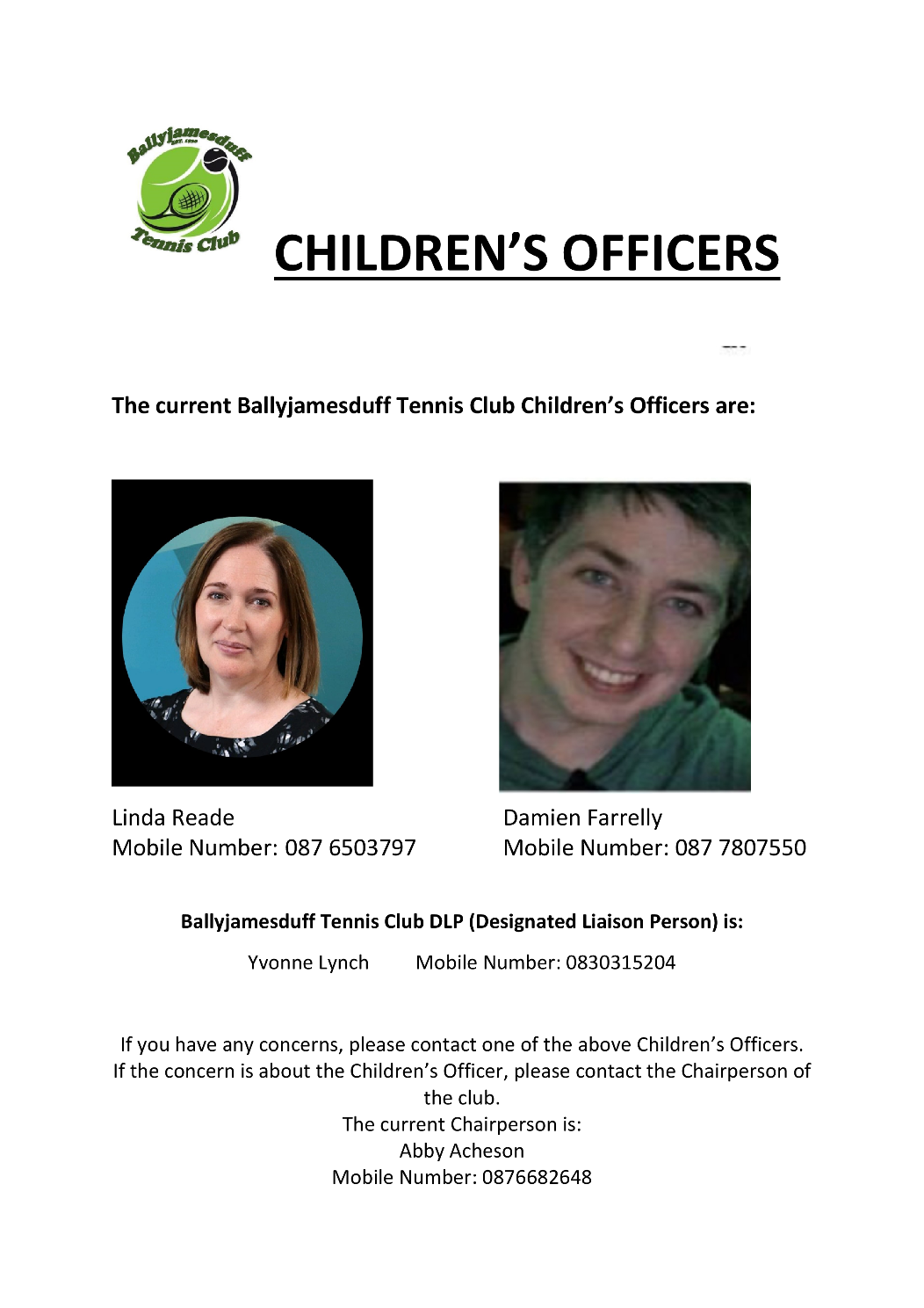BJDTC’s Child Safeguarding Statement has been developed in line with requirements under the Children First Act 2015. BJDTC acknowledges the duty of care to safeguard and promote the welfare of children and is committed to ensuring safeguarding practice reflects statutory responsibilities, government guidance and complies with best practice and Tennis Ireland requirements. Our Safeguarding policy recognises that the welfare and interests of children are paramount in all circumstances. It aims to ensure that all children.